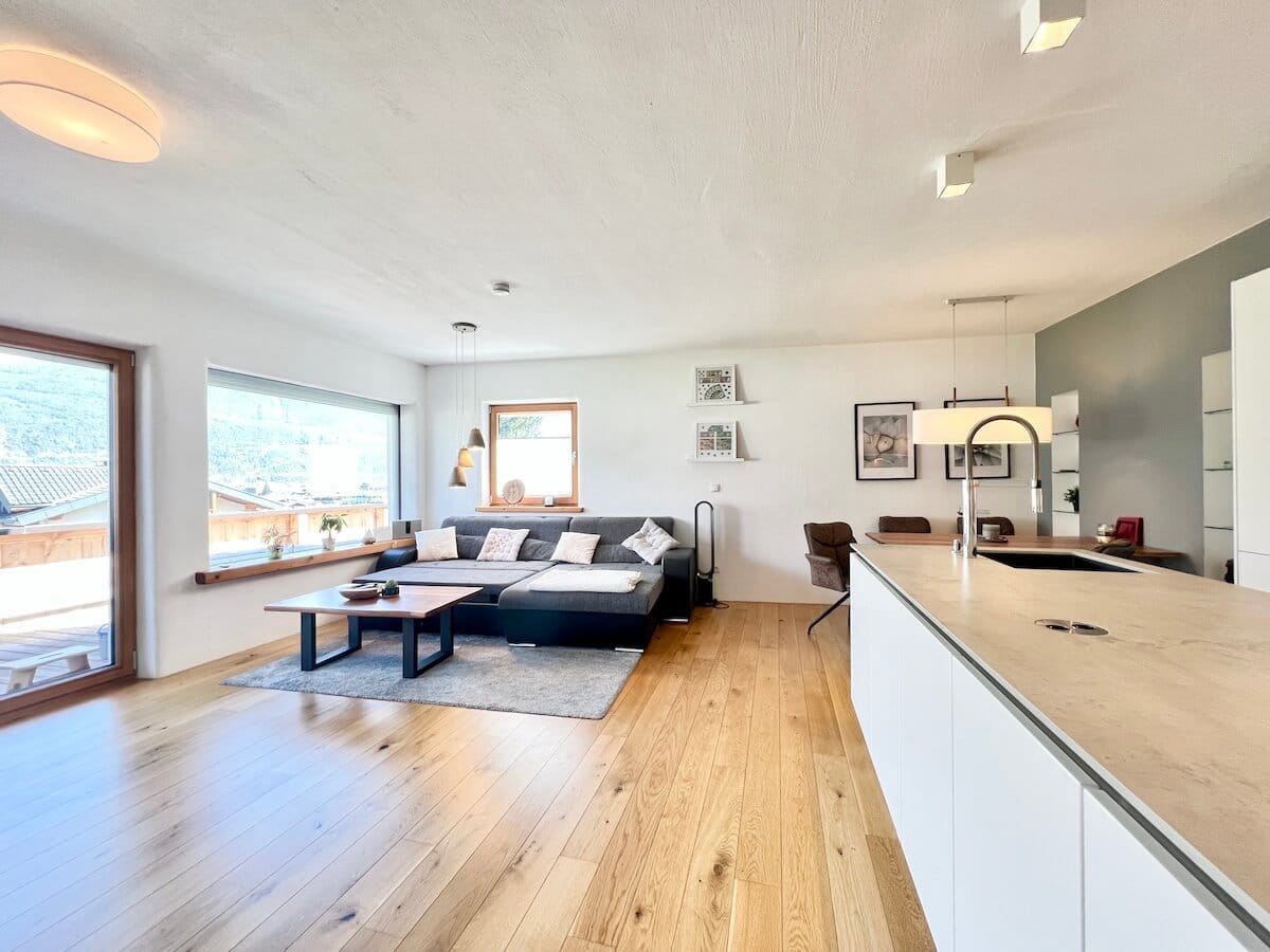 Diese helle und optimal geschnittene 3-Zimmer-Wohnung befindet sich in einem gepflegten Mehrfamilienhaus mit lediglich vier Wohneinheiten. Das im Jahr 2017 errichtete Gebäude in charakteristischer K-Stil-Bauweise überzeugt durch eine gelungene Kombination aus moderner, hochwertiger Ausstattung und stilvollen Elementen traditioneller Tiroler Architektur.